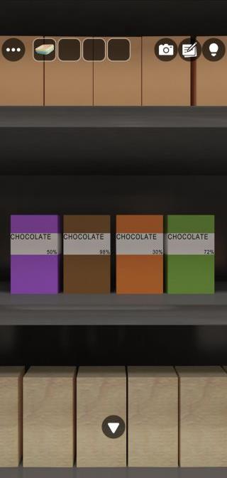 チョコレートを拡大して、数字の大きい順に『茶、緑、紫、オレンジ』を確認。