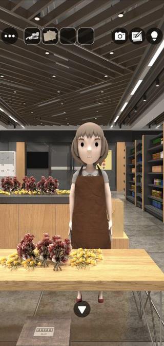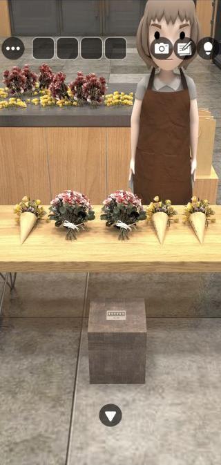 女性店員に「紙」を渡して、「リボン」を渡す。