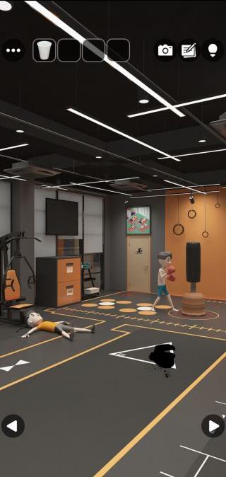 ジムに戻って、左で倒れている男性を拡大。