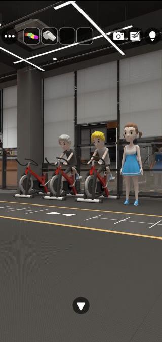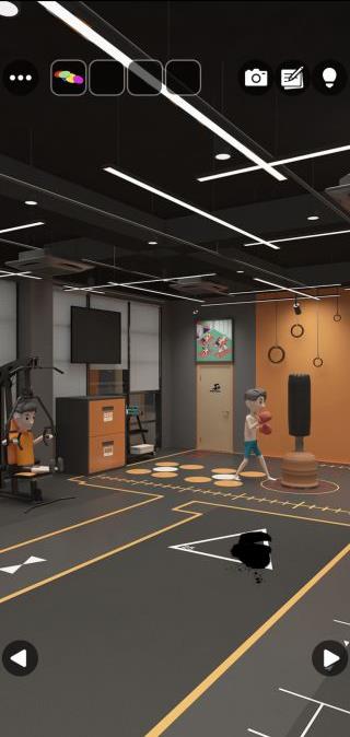 奥に進んで、モニターの前へ。