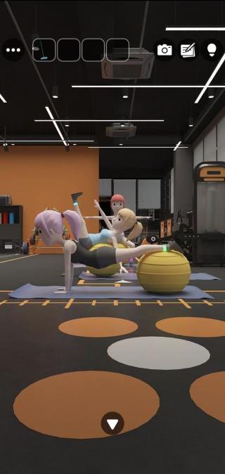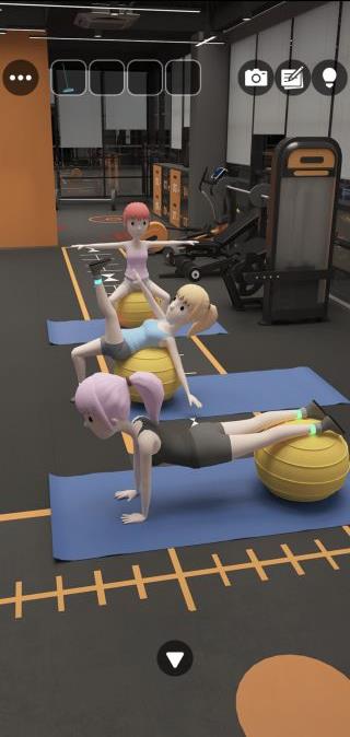 手前から見て、バランスボールの位置に対応した3人のポーズを確認。