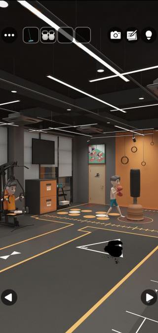 「モップ」を使って、数字の順で先ほどのケトルベルの図形が『●、■、八角形、●、■、八角形』なのを確認。