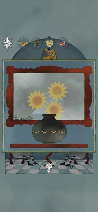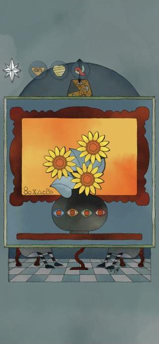 花瓶に「ひまわり」をセットする。