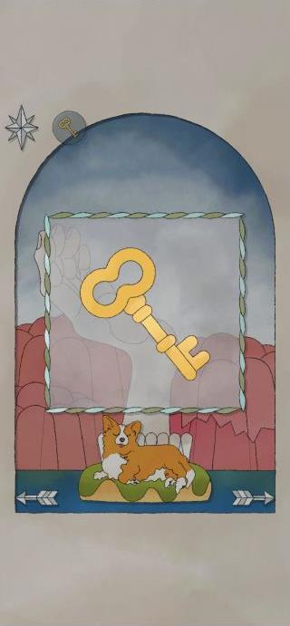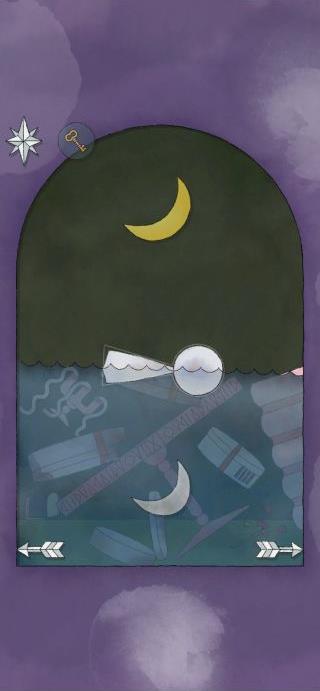 右に移動して、中央の鍵穴に「カギ」を使う。