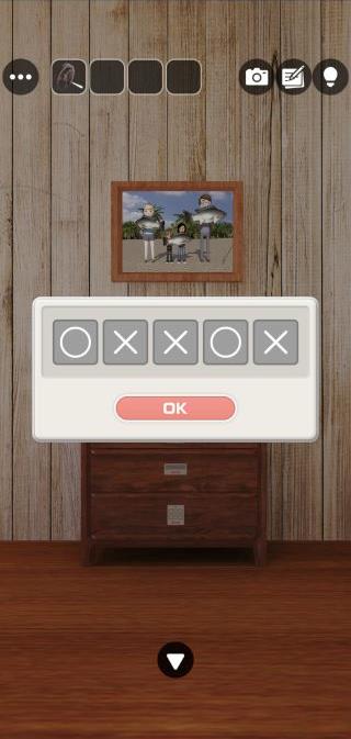 『左上、左中、中下、中央、右上』の順で『○✕✕○✕』を確認。