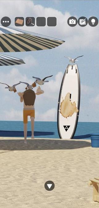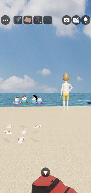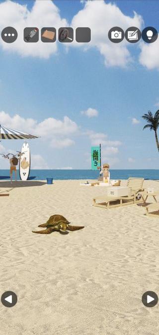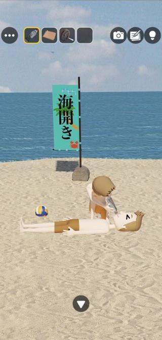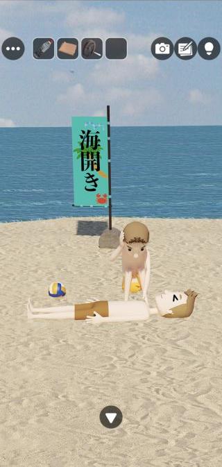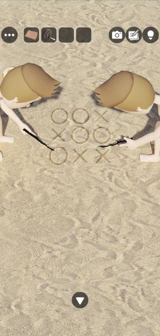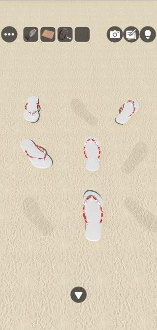砂浜のビーチサンダルの向きの順で『左上、左中、中下、中央、右上』を確認。