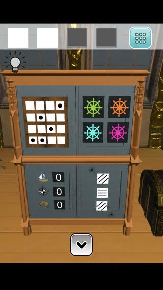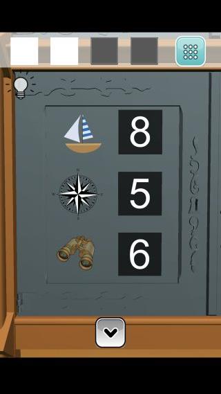左下の装置を拡大して、『船=8、コンパス=5、双眼鏡=6』に合わせる。