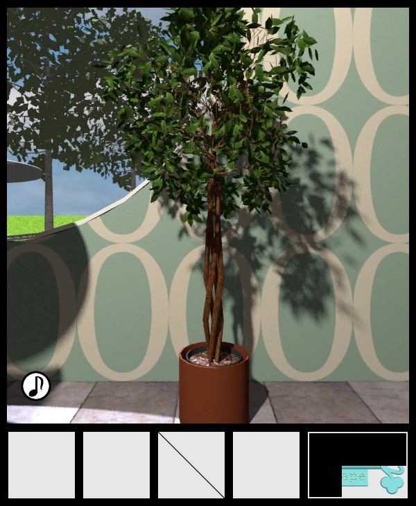 右の植木を拡大して、「鍵のパーツ」を入手。