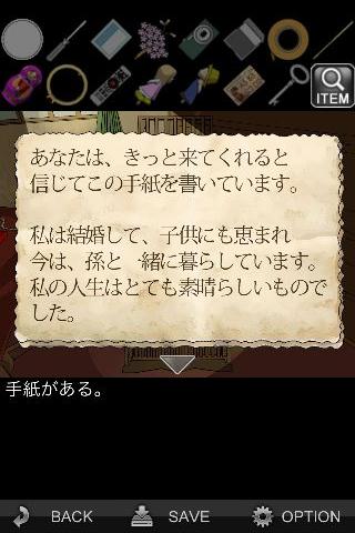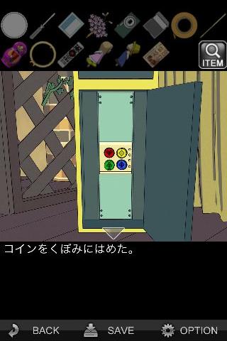 脱出ゲーム: 遠い日の約束 無料 0 評価する 送信する IDAC CO.,LTD.(WaveA PTE.LTD.) 攻略その9 反対側に移動して、棚の一番下の扉へ。 扉を開けて、4つの「コイン」をはめる。 中から「鍵」を入手。 左に移動して、扉に「鍵」を使う。 隣の部屋へ。 椅子の上の手紙を確認。 前の部屋に戻り、右に移動。 窓を開けて、脱出。 攻略その1 攻略その2 攻略その3 攻略その4 攻略その5 攻略その6 攻略その7 攻略その8 攻略その9