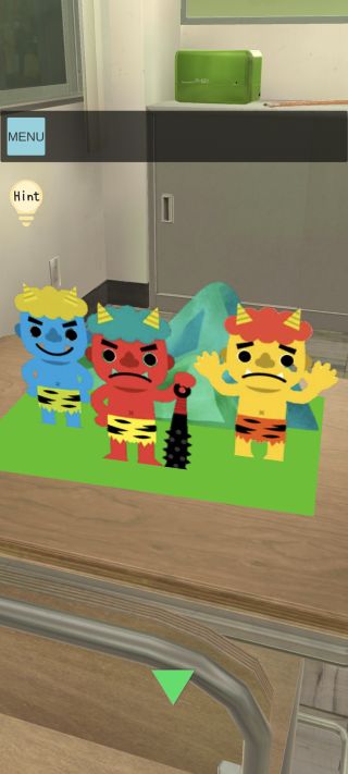 奥の3色の鬼の表情を確認。