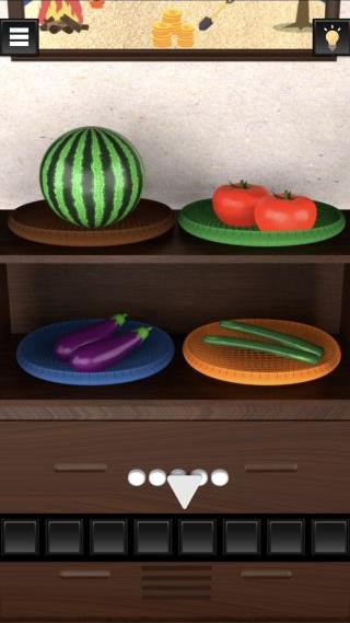 棚を拡大して、皿の色と野菜とフルーツを確認。