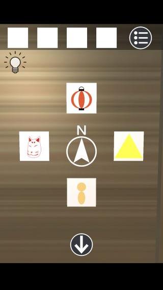 『北=提灯、西=お面、東=▲、南=こけし』