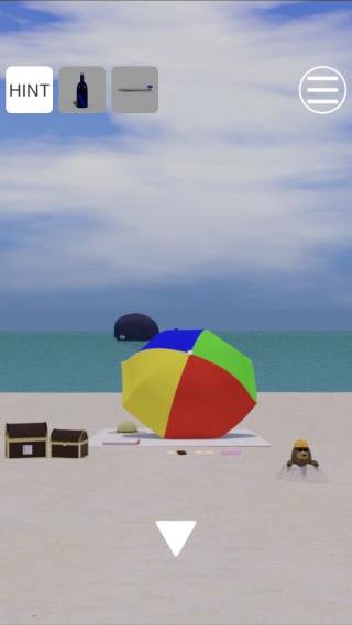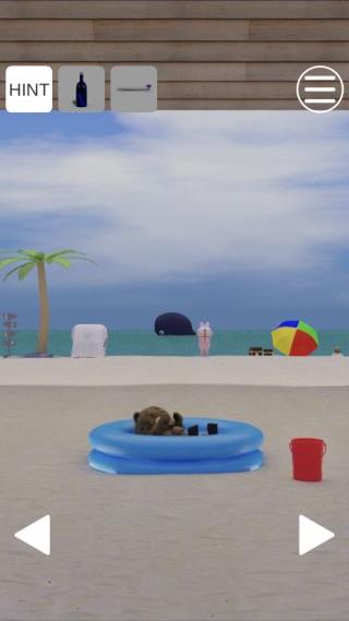 右奥のビーチパラソルを拡大。