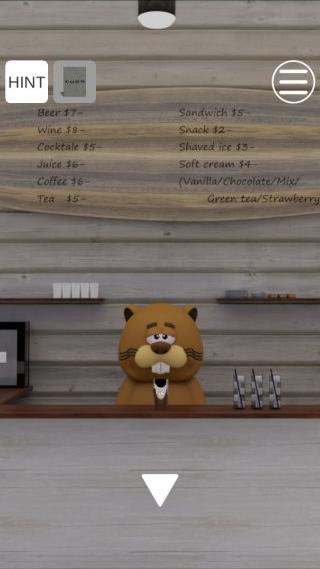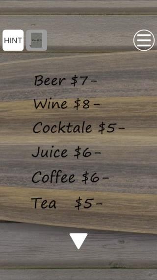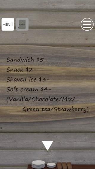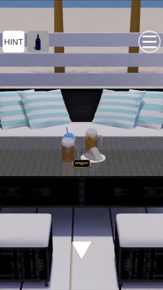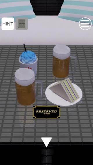 テーブルの上を拡大して、『左上=かき氷、右上=ビール、左下=ビール、右下=サンドイッチ』を確認。