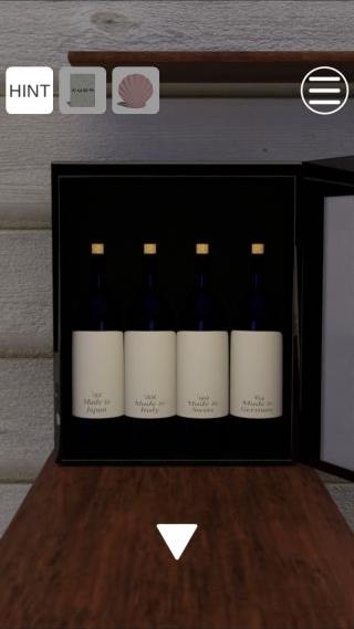 中のボトルのラベルを拡大して、『92、64、88、99』の順で『日本、ドイツ、イタリア、スイス』を確認。