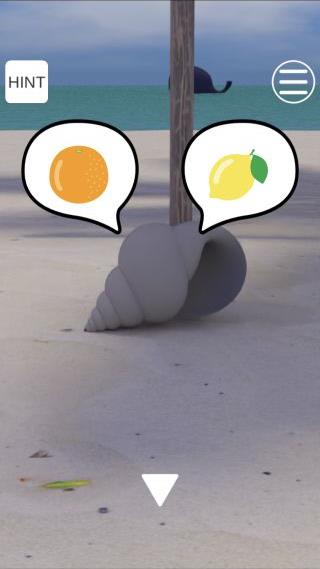左下の巻き貝を拡大して、『オレンジ』を押す。