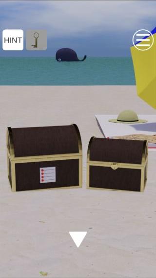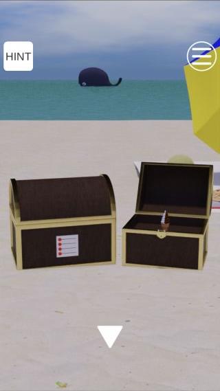 左の箱の南京錠を拡大して、「カギ」を使う。
