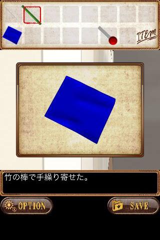 棚の左側面から後ろを覗きこんで、「竹」を使って「青いセロハン」を入手。