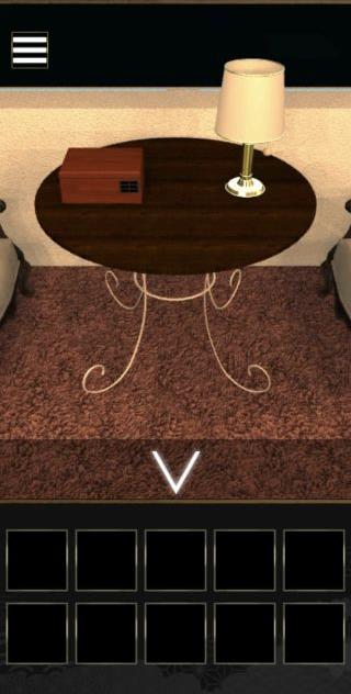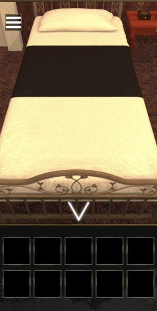2つのベッドの白黒の配置を確認して、奥のテーブルを拡大。