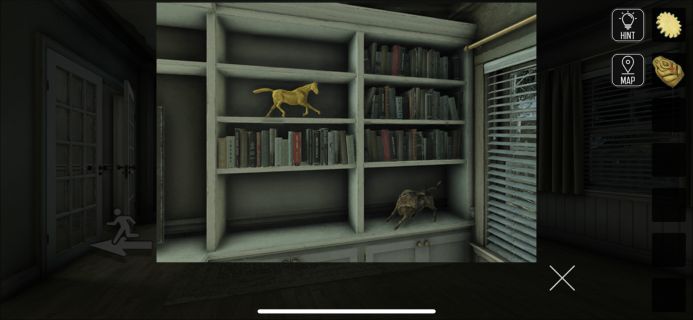 左右の棚を調べて、本が置かれている段の数の順で動物の置物と張り紙を確認。