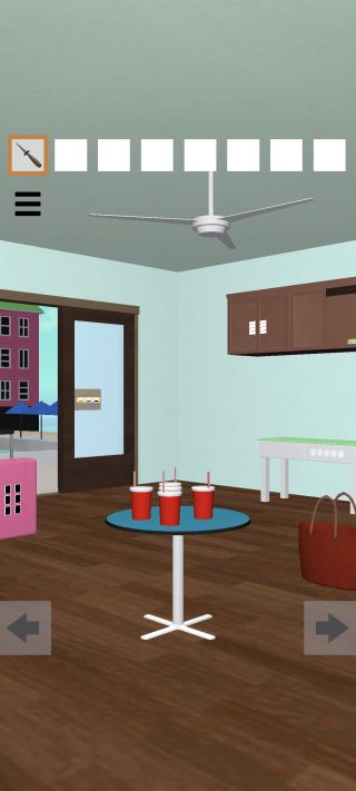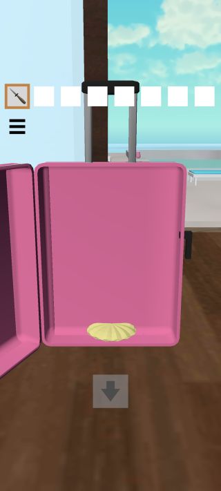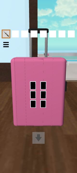 部屋に戻って右に移動して、左のキャリーケースを拡大。