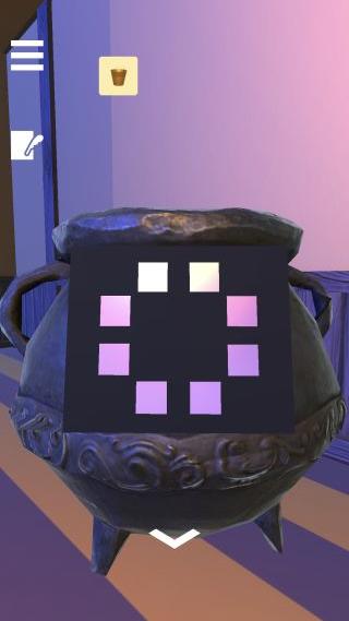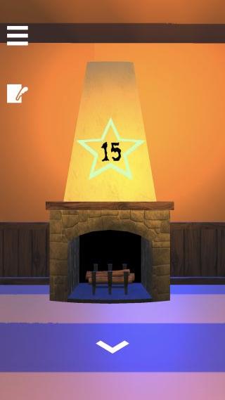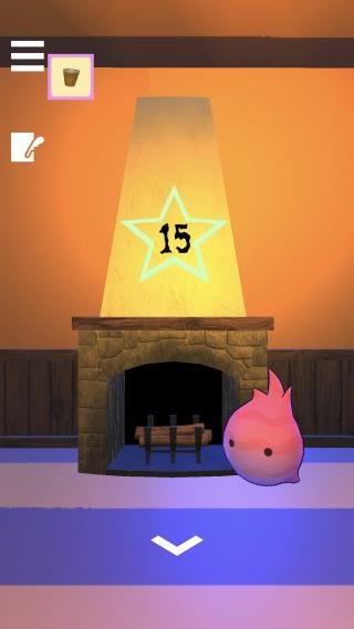 暖炉の中を調べて、目の色の変化『青緑赤紫黄』を確認。