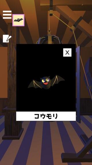 「コウモリ」を入手して、前の部屋に戻る。