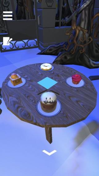 テーブルを拡大して、中央の青い◆と4つのケーキを確認。