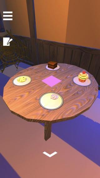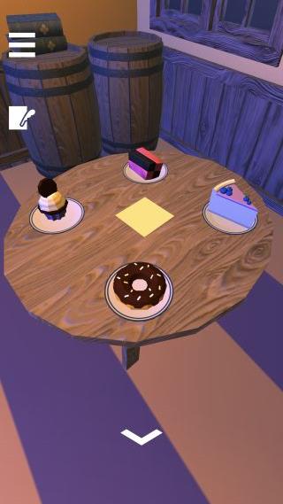 テーブルを拡大して、中央の紫の◆と4つのケーキを確認。