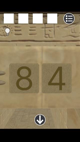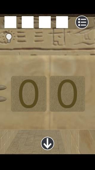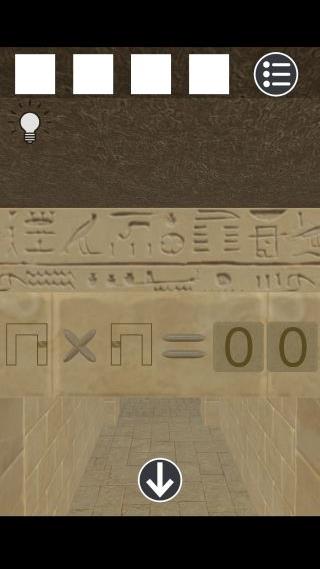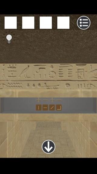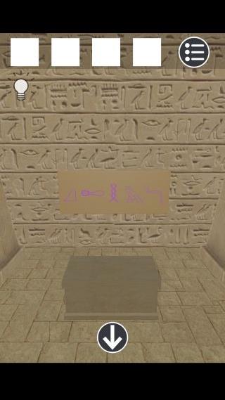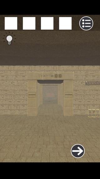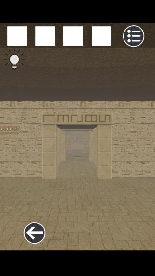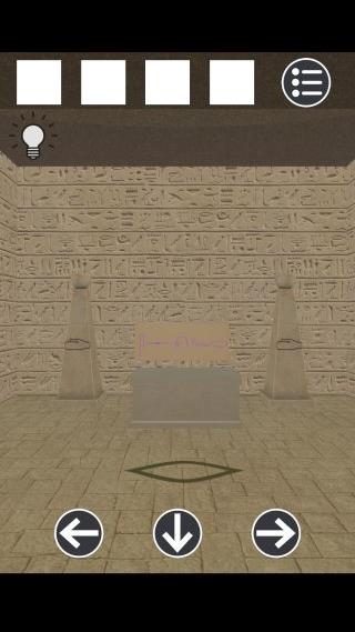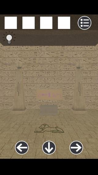 奥の部屋に移動して、左右の高い台座のヒエログリフと床のライオンを確認。
