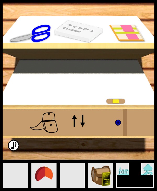 「ポシェット」に「ティッシュ」を入れて、奥の部屋の右に移動。