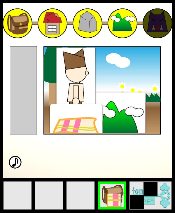 「ポシェット」に「ハンカチ」を入れて、隣の部屋の右に移動。