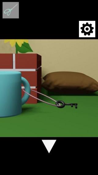 ジョウロを拡大して、「はさみ」でヒモを切る。