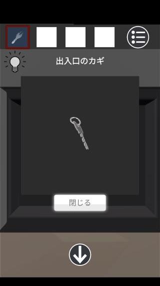 正面の扉を拡大して、「出入口のカギ」で開けて脱出。