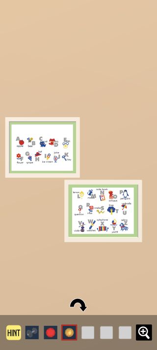 左のアルファベットに対応した絵柄を確認。