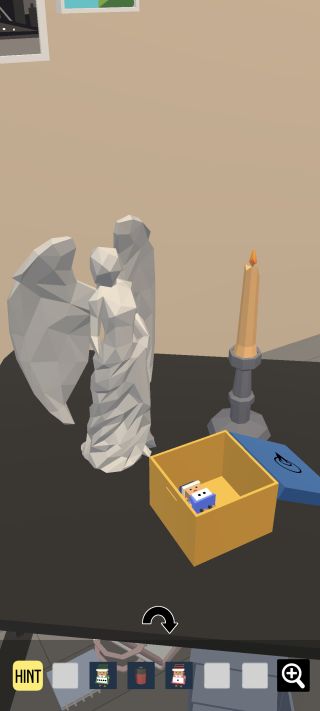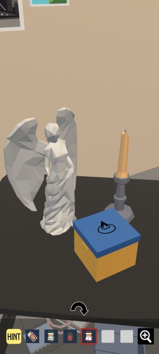 テーブルの上を拡大して、ロウソクに「マッチ」で火をつける。