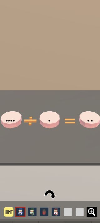 左の棚を拡大して、3つの「サンタ人形」の胴体の●の数で式が成り立つようにセットする。