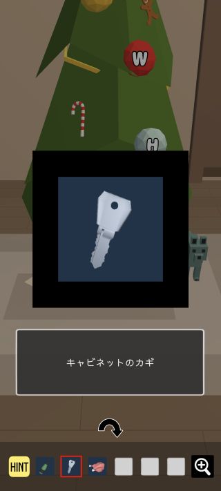 「キャビネットのカギ」を入手して、左に2回移動。