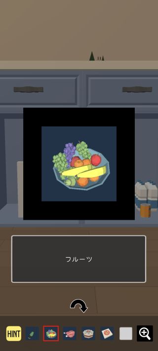 「キャビネットのカギ」で開けて、「フルーツ」を入手。