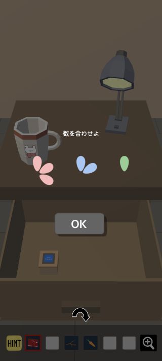 花の模様の3色の数を確認して、最初の部屋のベッドの前へ。