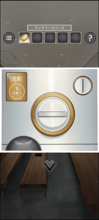 ベンチの下から「洗剤販売機のコイン」を入手。