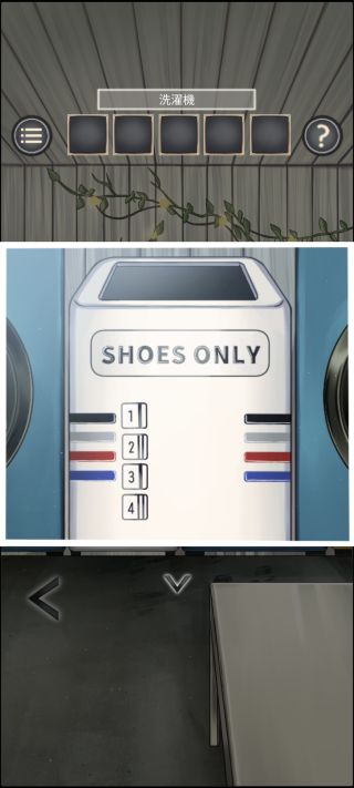 脱出ゲーム コインランドリー 無料 2.0 評価する 送信する LIB(Kazunori Shojima) STAGE 4 中央のシューズ用洗濯機を拡大して、数字の横の縦線の数で色が『黒灰灰赤青青』となるのを確認。 上の装置を拡大して、『黒灰灰赤青青』の順で押す。 STAGE 1 STAGE 2 STAGE 3 STAGE 4 STAGE 5 STAGE 6 STAGE 7 STAGE 8 STAGE 9 STAGE 10 STAGE 11 STAGE 12
