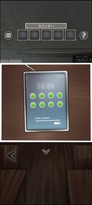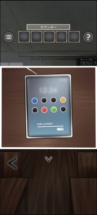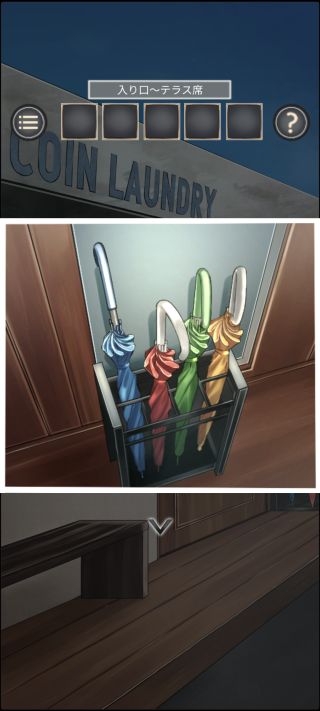 脱出ゲーム コインランドリー 無料 2.0 評価する 送信する LIB(Kazunori Shojima) STAGE 5 外に出る。 奥の傘立てを拡大して、4色の傘の入っている位置を確認。 店内のカウンターに移動。 カウンターの上から「タブレット」を入手。 左の充電器に「タブレット」を置く。 起動させる。 先ほどの傘立ての傘の配置に合わせる。 STAGE 1 STAGE 2 STAGE 3 STAGE 4 STAGE 5 STAGE 6 STAGE 7 STAGE 8 STAGE 9 STAGE 10 STAGE 11 STAGE 12