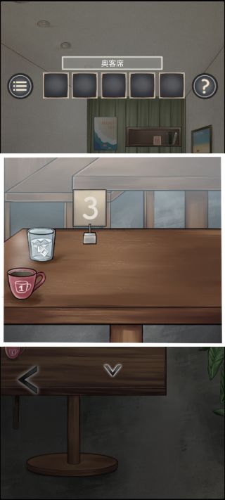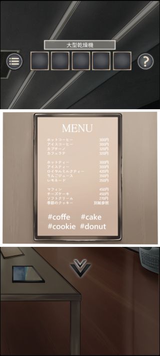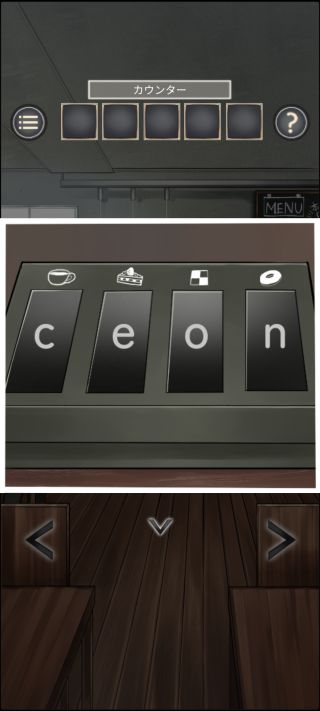 メニューを調べて、下の文字で『donutの3文字目=n、cakeの4文字目=e』を確認。
