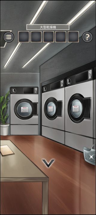 大型乾燥機の前に移動して、右のカゴを調べる。