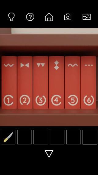 左上の赤い本を拡大して、数字の順で『右下上右左上』を確認。