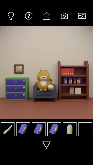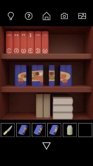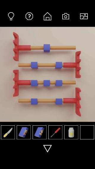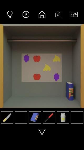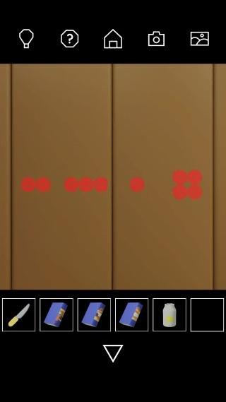 壁の赤●を拡大して、最初の部屋で確認したビンの灰色の部分の高さが『中大小小』なのを確認。