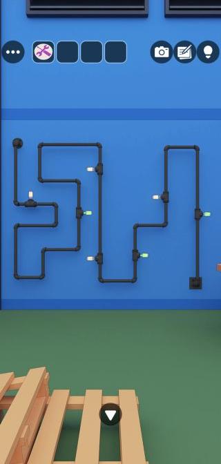 壁のパイプを拡大して、右下の■から左上の●へ『緑黄緑黄黄緑黄』を確認。