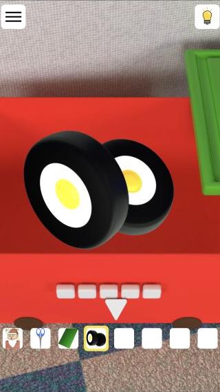 「ハサミ」で開けて、『口、ヒゲ、鼻、右側の耳』の順で押す。