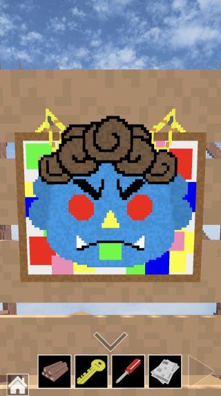「鬼のお面」をセットして、『目=赤、鼻=黄、口=緑』を確認。
